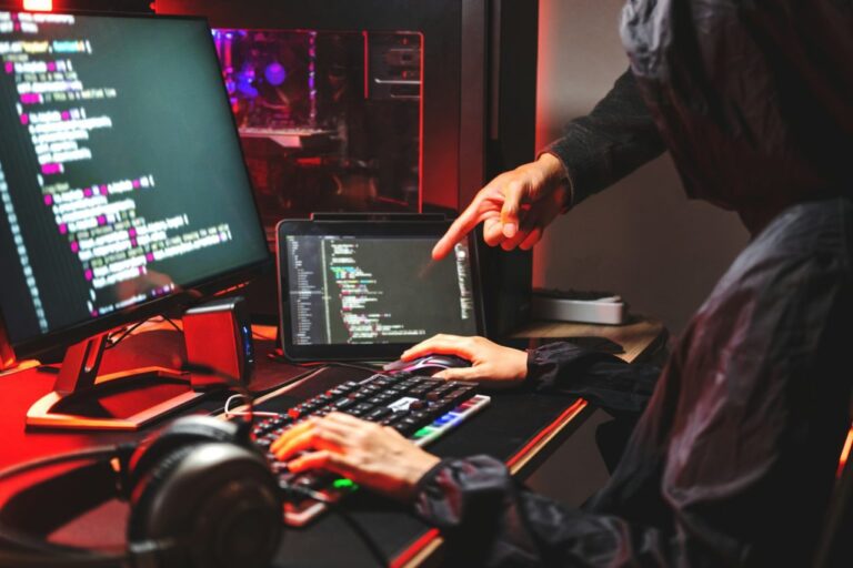 male-teenage-hacker-sitting-in-front-of-computer-screens-bypassing-cyber-secu...